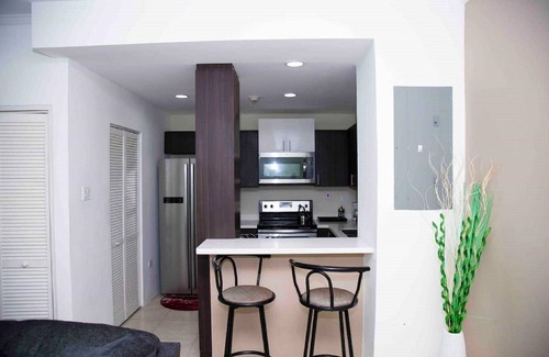 Beautiful modern 2 bedroom apartment located in a quiet residential area in New Kingston. This apartment is suitable for business travelers and vacationers alike. It Boost all the amenities needed for short term or extended stay. Property is well secured with 24 hours security and digital access. Other amenities include swimming pool, gym, elevators, wheelchair access. It’s close proximity to restaurants, banks, atm’s, shopping district, night club, sports bars.