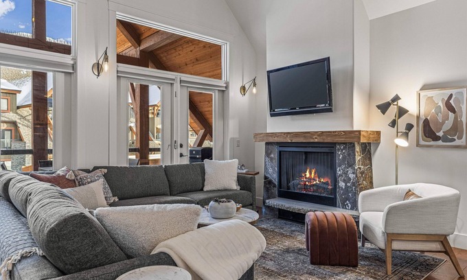 One of the highlights of this incredible condo is the high vaulted windows that allow you to bask in views of the mountain peaks. These windows also provide abundant natural light, creating a warm and inviting atmosphere throughout the space.