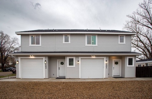 Escape to the perfect family retreat in our modern townhome, built in 2024, and conveniently located just 1 minute off the Interstate Freeway in the heart of Caldwell. With ample space to accommodate up to 10 guests, this side of the duplex offers the ideal blend of comfort and style. Featuring 2 sets of bunk beds, a Queen bed, a King bed, and a pull-out sofa couch in the living room, every guest will find a cozy place to relax and unwind.