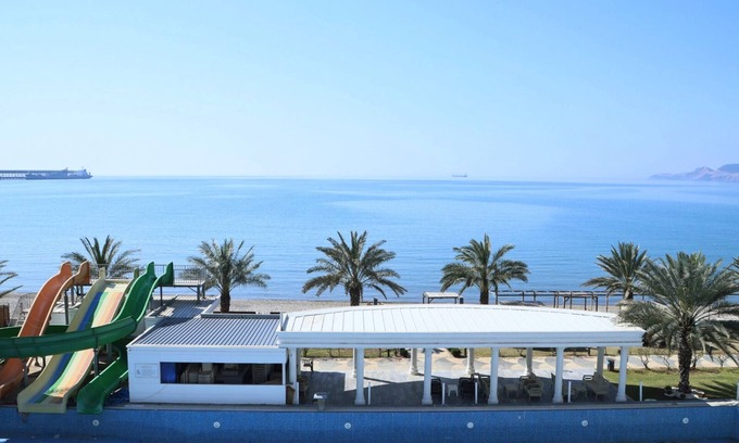 Recreational amenities at the hotel include a private beach and an outdoor pool.