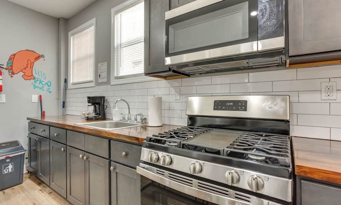Surround yourself with all of the New Jersey Gateway Region’s attractions when you stay at this 3-bedroom, 1-bathroom apartment. This Elizabeth, NJ, vacation rental offers a spacious and modern interior covered with unique murals, entertainment options like Smart TVs and board games, and a location that’s just a quick drive away from tons of fun. Hit downtown for drinks and dining, shop at Jersey Gardens, or take the train into New York City to see the sights. Your next adventure awaits!