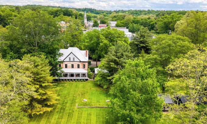 Nestled in the heart of the Hudson Valley, Elizabeth House & Creekside Cabins offers a timeless escape on six parklike acres, where the Catskill Creek meanders beneath a graceful stone bridge. This historic manor, paired with four rustic cabins, is listed on the National Registry of Historic Places and invites you to experience the elegance of a bygone era seamlessly blended with modern comforts.