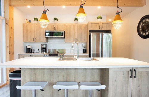 L'Elk is a brand new, up-to-date chalet. Its sleek and bright decor gives a prominent place to wood. In addition to its open area with a full kitchen, dining room and living room, it has two intimate bedrooms.