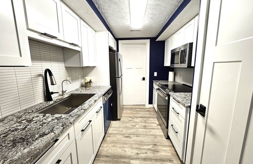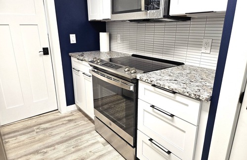 Unit #3 is on the ground level in the South Building and can sleep 4- 6. This awesome unit is in the middle of the building with short walk to car & the heated pool, with no stairs!. The large one bedroom has a king size bed and a full sleeper sofa. Newly remodeled kitchen with granite counter tops, all new GE appliances, RO Water Filter and large dry bar.The unit also has 2 remodeled bathrooms that are fabulous! One with a deep soaking tub and one with a custom walk-in shower. There is a fully equipped kitchen & a dining table with seating for 4. The living room area offers a great view of the bay, a queen sofa sleeper, comfy chairs, electric fireplace & a flat screen TV. Enjoy Sunset views over Grand Traverse Bay and use of the heated in-ground pool. This unit has private wifi. Sheets & bath towels included. All of these condo units are strictly NO SMOKING - NO PETS. These units are individually owned and the décor varies from unit to unit.