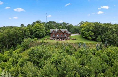 Sweeping views of the Ausable River Valley throughout one of Michigan's most unique mountain lodges! 1 of 2 equally spectacular mountain lodges available to stay on 60 acres of secluded "mountaintop" right in mid-Michigan. Rent one or both properties for your family, friend, corporate or wedding event.