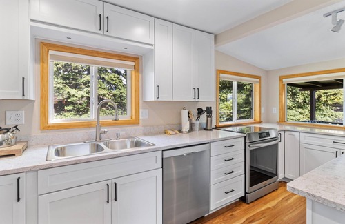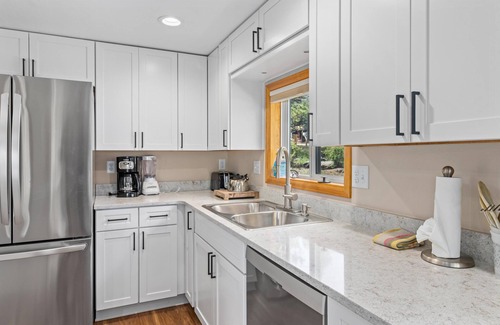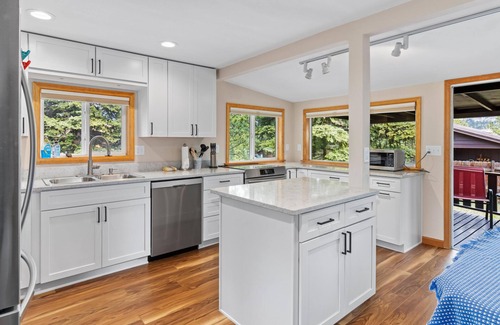 Newly Remodeled Kitchen: The spacious, newly remodeled kitchen is fully equipped with modern appliances, sleek countertops, and all the essentials you need to whip up delicious meals. Enjoy your culinary creations at the charming dining nook or outside on the deck.