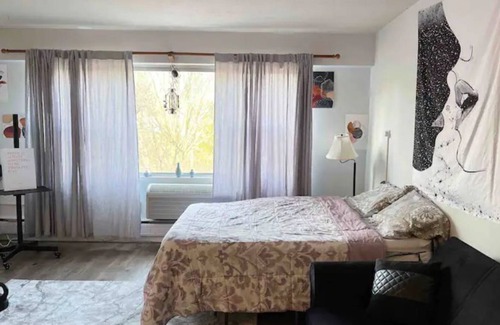 Elkins Park studio 1 Queen & 1 sleeper Hotel style kitchen & bathroom+ Amenities is located in Elkins Park. Elkins Park studio 1 Queen & 1 sleeper Hotel style kitchen & bathroom+ Amenities provides accommodation, featuring Fireplace/Heating, Guest Services, Balcony/Terrace, among other amenities. This Cabin features Fireplace/Heating, Guest Services, Balcony/Terrace, to make your stay a comfortable one.