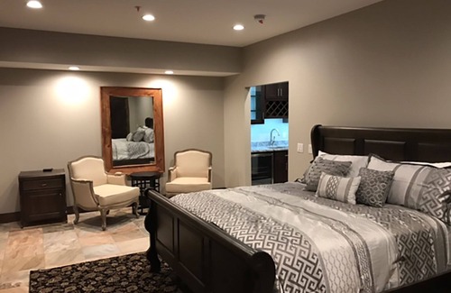 "Aspen Wast" (Villa 27) is a luxury rental villa in the heart of Ellicottville. Built in 2016, the 3,000 sq. ft. unit has 4 bedrooms with 4 full bathrooms. The four bedrooms offer: BR#1 - 1 King; BR#2 - 1 King; BR#3 - 1 Queen; BR#4 - 2 Fulls and 2 Twins (bunk beds). The lower bedroom (BR#1) has a fireplace looking out onto patio with a breakfast bar, heated floors and kitchenette (includes refrigerator and sink). The second floor has a spectacular great room with two story windows, dining room, full bath, full kitchen, wet bar, heated floors, wine fridge, beer fridge, washer/dryer and a double sided fireplace looking out onto the balcony. Granite, high-end appliances and appointments throughout. The third floor has three bedrooms with two full baths and loft TV / lounge area. The unit includes an attached single car garage and outdoor parking. The patio and balcony have an astounding view of the mountains, walking distance to area restaurants and shops. Holimont and Holiday Valley ski slopes / golf minutes away. Holiday Valley ranked #3 on list of "Best in the East" by Ski Magazine.