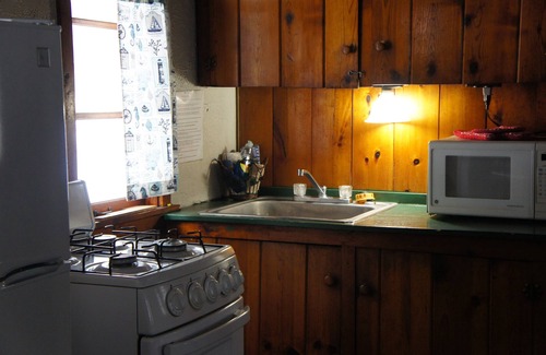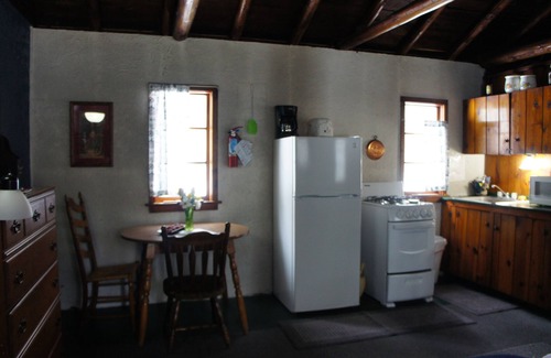 As you walk into the Elm cabin you are welcomed into a rustic space of quiet charm with the combination living room/kitchen/bedroom and separate remodeled bathroom with a shower. This allows for comfortable sleeping, plenty of relaxation in the living area along with a small fully stocked kitchenette with all the essentials. The Elm will offer plenty of room for 2 adults and 2 children or 3 adults with a queen bed and double futon. This Franklin wood stove is a nice addition to this cabin for those cooler nights or just having a little romantic fire.