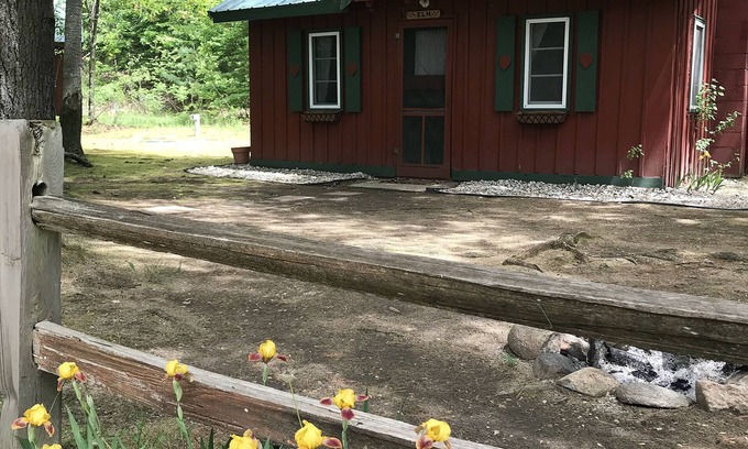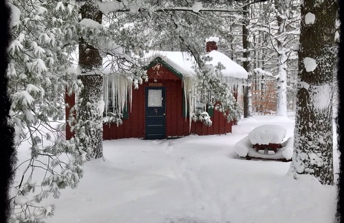 *From your cabin door it is just a short walk to our waterfront area on Ellis Lake or to our outdoor hot tub (common share for other resort guests) located in the woods beneath the pines and stars (sign up board located outside office for 1 hour of private usage).