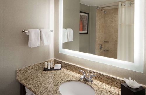Embassy Suites by Hilton Philadelphia Airport offers 263 accommodations with safes and coffee/tea makers. Accommodations are furnished with double sofa beds and desks. Pillowtop beds feature down comforters and premium bedding. Guests can make use of the in-room refrigerators and microwaves. Bathrooms include designer toiletries and hair dryers.