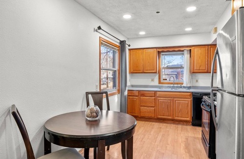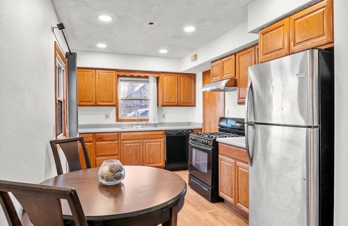 Welcome home to a stylish place to stay, perfect for group trips/remote work. A comfortable and clean 3 bedroom, 2 baths plus bonus room apartment-style home in a quiet neighborhood; 2 offices, a huge finished basement, and a laundry with washer-dryer. Private entrance, Huge yard, and beautiful green in summer/fall. The Interior has mostly hardwood floors except for the bathroom and upgrades throughout the home. A/C is present in the house, including appliances like a new dishwasher, range cooker, and stainless steel fridge.