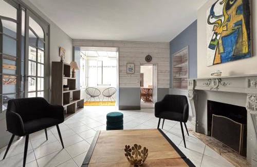 Embruns maison spacieuse rénovée 5 ch 3 sdb belle terrasse aménagée barbecue à 250 m de la plage en plein centre d' Arromanches au coeur des plages du débarquement, proximité de Bayeux | House in Arromanches-les-Bains