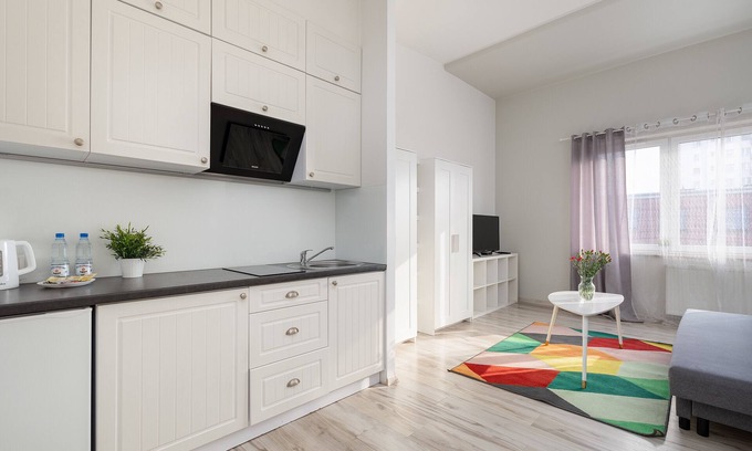 Best-rates for the Emilii Plater Studio #60 starts from $79 per night with includes TV, Accessibility, Wellness Facilities, Child Friendly, Internet, Kitchen, Wheelchair Accessible, Security/Safety, Bedding/Linens, Fireplace/Heating, Laundry StayAndPlay offers fully equipped golf villas, golf hotels, golf resorts, luxury golf cabins, and exclusive golf retreats, making it easier than ever to find your perfect golf escape — ideal for families, peaceful getaways, or pet-friendly retreats with the whole crew.