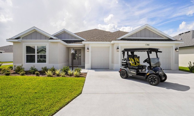 Best-rates for the Sumter County house starts from $213 per night with includes Air Conditioner, Pool, Balcony/Terrace, Security/Safety, Wellness Facilities, Fireplace/Heating, Guest Services, Internet, Pet Friendly, TV, Bedding/Linens, Child Friendly, Kitchen, Laundry, Parking StayAndPlay offers fully equipped golf villas, golf hotels, golf resorts, luxury golf cabins, and exclusive golf retreats, making it easier than ever to find your perfect golf escape — ideal for families, peaceful getaways, or pet-friendly retreats with the whole crew.