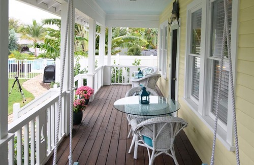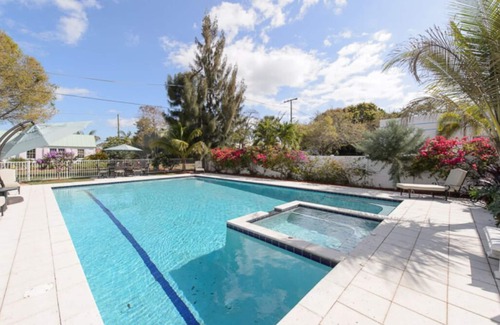 (Pool Access/Use) The Enchanted Cottage is an off-site (200 feet from the main Hotel Building) two-story stand-alone 1,600 square foot cottage located on spacious grounds (approximately 1/2 acre) surrounding a large swimming pool with "Golden Mean" dimensions (44 x 27 foot lap pool) and spa. This charming cottage features antique Florida heart-pine flooring and paneling, two bedrooms (king bed in spacious second-floor master bedroom and full bed in smaller ground-floor bedroom), a fully-equipped kitchen, a dining room with dining table for 8, a spacious living room with fireplace and cozy furnishings (including a queen sleeper sofa), two bathrooms with shower (one on each floor), in-kitchen washer and dryer, a private wrap-around porch with outdoor seating and views of the courtyard and pool, and access to the pool and spa with comfortable outdoor furniture.