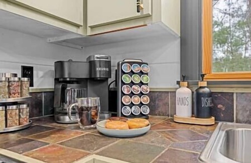 • Fully stocked kitchen with stainless steel appliances, classic coffee maker, and Keurig machine for your morning brew