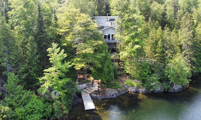Relax with the whole family at the magical enchanted forest retreat. Located on Lac Patterson, private and surrounded by the woods, just 1h20min from Ottawa. 4 Bedrooms with multiple balconies, 3 different seating areas within the property with 2 fire pits. With over 7.5 km of hiking trails. This cottage is perfect for couples, families, and friends looking to escape from the city. 7 mins drive to Mulligans Grocery which includes a SAQ. 30 min to Gracefield where you will find restaurants, casse-croutes for poutine and ice cream, and Metro.