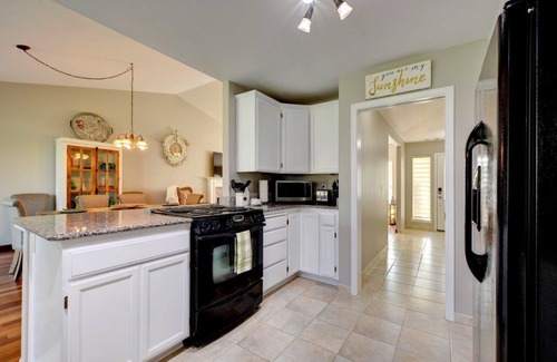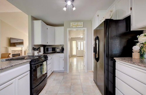 As you step inside, you'll be greeted by a fully stocked kitchen, complete with a stove, oven, refrigerator and all the essential appliances and utensils you need to whip up delicious meals. Unwind in the cozy living room, where you can enjoy the warmth of the fireplace and catch your favorite shows on one of the 3 smart TV's. When it's time to refresh, you'll find 2.5 bathrooms stocked with towels and basic soaps, as well as a hair dryer and an iron and board for your convenience. Stay connected with the property's high-speed WiFi, and take advantage of the in-unit washer and dryer to keep your clothes fresh.