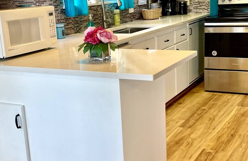 Indulge in a Luxurious Retreat for the Modern Adventurers: Fully Renovated Oasis with Breathtaking Views! Just a Short Stroll to the Beach on a Tranquil Street with Ample Parking. Immerse yourself in Elegance with a Quartz Kitchen Countertop, Stylish Décor, and Recently Remodeled Interiors. Relax on Leather Furniture while Enjoying Two Flat Screen HDTVs with Firestick/Smart TV for Streaming. Stay Productive at the Convenient Writing Desk or Unwind on the Deck, Reveling in the Serene River and Mountain Vistas. Experience 1,000 Square Feet of Pure Luxury with Spacious Rooms and Comfortable Vinyl Floors. Stay Fit with Complimentary Yoga Mat, Roller, and Free Weights. Discover the Possibility of Combining our 2-Bedroom Villa (VRBO 229419) for Larger Groups (Up to 8).
