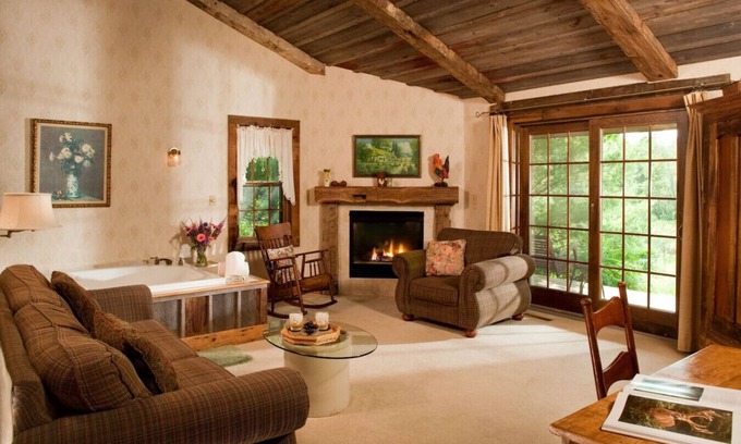 Escape to our elegant Hemlock cabin, an oasis in Door County. With a stunning cathedral ceiling, hand-hewn beams, tasteful decor, to combine rustic charm with sophistication. Enjoy cozy evenings by the gas fireplace or relax in the double whirlpool tub. Perfect for couples seeking romance, the Hemlock offers peace and privacy. Book your stay today and experience the beauty of this serene getaway!