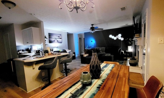 Our ranch-style cottage boasts a delightful blend of natural elements and contemporary amenities, creating a welcoming ambiance during your stay. Every living area is tastefully furnished, providing ample space for relaxation, bonding with family and loved ones, intimate celebrations and modest small group occasions.