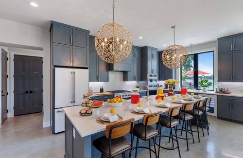 Fully Equipped Kitchen | Cafe 6 Burner Gas Cooktop | Cafe Oven and Microwave | Cafe Refrigerator with Ice Maker | Keurig K-Classic Single Serve | Coffee Drip Coffee Maker | Cafe Dishwasher | Wine Refrigerator | Dishes & Utensils | Extra Refrigerator in Laundry Room