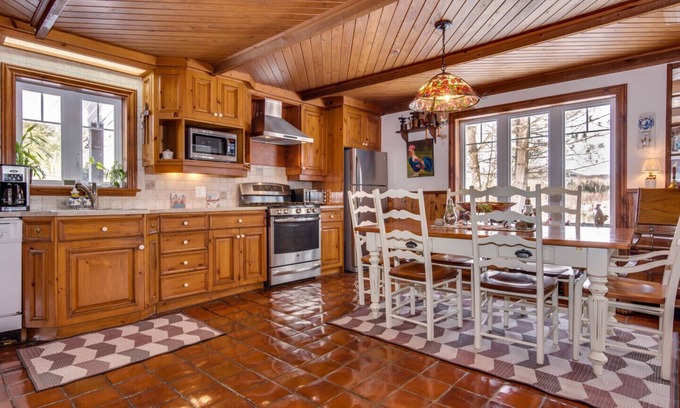 Come enjoy a wonderful getaway in a superb chalet nestled in a beautiful wooded setting surrounded by mountains and overlooking the Rouge river! Less than 1h45 from Montréal, this chalet is perfect for a large/extended family or even a couple families to enjoy together. You can stay and enjoy the chalet, hiking the peaceful woods or canoeing or kayaking on the river, or venture out to golf, ski, or visit any of the many attractions in the greater Mont-Tremblant area!