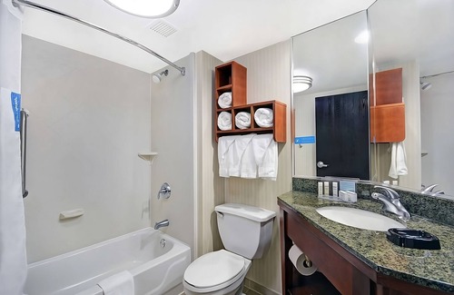 ✦ Your room is 398 sq. ft, equipped with complimentary toiletries, standard quality 32-inch TV, available with Standard cable.