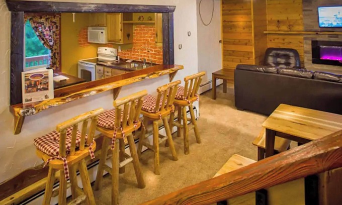 "Ponderosa" our split level (3 floors), western themed chalet is large enough for the entire family or multifamilies. This has 2 full bathrooms including a jacuzzi tub, a fireplace and private deck. Our lodge has 10 docks for fishing, swimming, and nonmotorized boats are complimentary with the stay.