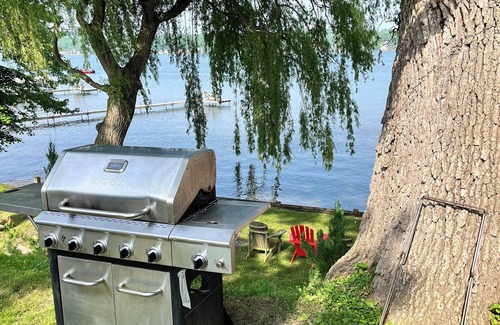 Book your stay at Casa San Leone and enjoy a relaxing getaway complete with gorgeous lake views and plenty of privacy in a charming 1910 Conesus Lake Cottage. This seasonal and authentic Finger Lakes cottage, is a beautiful 3 bedroom (plus sleeping porch) 2 full bathroom home on east side of Conesus Lake. A classic covered porch overlooks the lake and the gorgeous sunsets. Plenty of privacy - 140 feet of lake frontage; dock; fire-pit; picnic area; off-street parking for 3 cars. The lovely property features original Finger Lakes cottage charm with almost 1400 square feet of space. Air conditioning on main floor and master bedroom (window unit); 3 bedrooms that sleep 5 comfortably; two full baths (one upstairs and one downstairs); newly remodeled chef's kitchen; dining room; spacious living room overlooking the lake. Enjoy your morning coffee and evening sunsets on the porch or relax lakeside with s'mores around the campfire all while enjoying the private dock and kayak. Seasonal, limited availability.