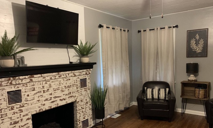 The Brick Cottage is located in the heart of Owensville right along the highway. The home has been updated with an industrial farmhouse vibe while maintaining its original character and charm. It is the perfect place to stay while in town for weddings, family events, work travel, or just a getaway. Close to wedding venues and wineries. Visit our small town and stay The Brick Cottage! It is close within walking distance to the downtown area with coffee shop, restaurants, boutiques and shops. 30 minutes from Hermann and St. James. 1.5 hours from St. Louis and Columbia. You will be the only occupant of the home during the stay. You will have access to the main floor, yard, and patio. Upper level…coming soon. There are 2 bedrooms with queen beds. All bedrooms have smart TVs. Settle in by the cozy fireplace in the living room which also has a smart TV. WiFi is available to log into your account and watch your favorite things. A full kitchen and dining area is available. There is an outdoor patio area and BBQ grill for seasonal enjoyment. Sit outside, relax, and enjoy the yard and patio. Convenient self check in with keypad locks. There are neighboring homes. There are small flights of stairs to all entrances of the home. A small garage is located behind the home which you may park by but will not have access to.