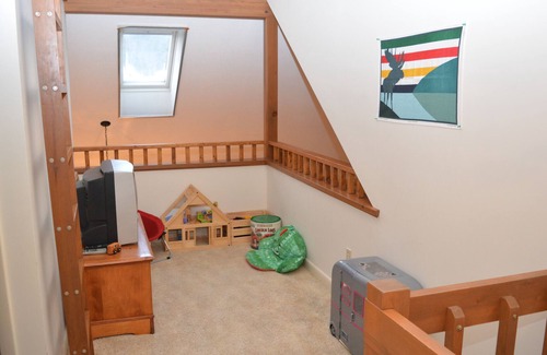 than 100 yards from a designated area to launch your boat, you can stow your kayaks, canoe, or paddle board under the deck (or rent watercraft at South Cove). The main level features a living room with views of the water and a large screen TV, a well-equipped kitchen, and dining space. There is a true master with queen bed and private full bathroom. Sliding doors from the dining and master bedroom allow access to the deck overlooking the water. Upstairs you will find two additional bedrooms, one with a full bed and bunk bed and the other with a twin bed and bunk bed. there is a shared full bathroom on this level as well. The lower level has a large family room, a bedroom with twin bed and a three quarter bathroom.