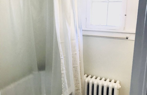 The bedroom holds a brand new Queen sized bed and there is another twin sized daybed in the living room area for an extra guest. Travelers with small children may request a pack and play and stroller for use to make walking around town just that much easier! The bathroom sports the original clawfoot tub great for showers of soaking after a long day! A separate dining area can be used for meals or as a desk if you must get some work done! The kitchen has a Keurig coffee maker, toaster, microwave, full sized refrigerator and stove, plates, pots and pans, of course!