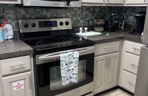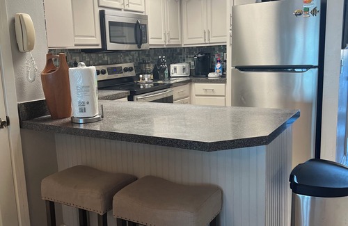 If you wish to rent our beach home please provide a picture of your license and names and ages of anyone that will be on the property within 12 hours or unfortunately your stay will be canceled. A maximum of 7 people at any time is all that is allowed. If more than allowed you will be required to leave, lose your deposit and rental money. From the moment you get out of your vehicle and walk directly in with no steps to the keyless entry door you know you have reached your final destination to relax and let the drive or plane ride dissolve away. Cozy and calming once you open the verticals to the beach you know you are at your true getaway. There are many small appliances to use if you enjoy cooking. There is a new stacked washer and dryer. Since you are staying in our home you have access to the all the water toys and beach towels. Flat screen tv's in LR and both bedrooms. The master has a king and a full private bath boasting a 6 jetted rain bar plus a bidet and touch light mirror. The guest bedroom has a queen and twin with a full bath that lets you relax with a jetted tub. There are sand chairs stored in the closet under the steps along with outdoor toys, floats, boogie boards and noodles for your use. There’s a Ring doorbell with built in camera, Nest thermostats, Pella sliders and more