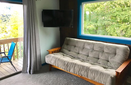 This experience is like no other; 1) hiking, swimming holes or disc golf out your door, 2) decks attached to almost every room that invite you to breath in the mountain air first thing in the morning and lastly before bed, 3) a secret play space for the kids or, hey, maybe for you!, 4) and new "Wendell approved" mattresses in every room, two flat screen TV's and gas fireplace for you to enjoy.