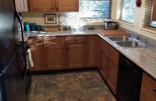 The roomy kitchen is equipped to satisfy even the most prolific chef in your group with granite counter tops, glass top range, oven, microwave, dishwasher, crock pot, rice cooker, coffee maker, toaster, double sink, high quality cookware, and cooking and serving utensils. Step through the glass doors at the edge of the kitchen to a chef's quality gas grill situated efficiently on the back deck.
