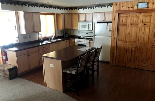 Imagine feeling like you're on your own private island. The Point House is located on a secluded lot at the end of private road with the sparkling water of Little St. Germain Lake surrounding you in three directions. Enjoy a peaceful cottage experience any time of the year. The living room, dining area and kitchen are cozy, yet spacious. The knotty pine walls and unique decor give the Point House character and charm. Two bedrooms each have a queen bed and the third bedroom has two twin beds. The fully equipped kitchen includes a microwave, Keurig coffee maker and everything needed for cooking and eating. Everyone can sit together at the dining table or spread out at the snack bar or outside at the picnic table. Enjoy roasting marshmallows outside at the campfire pit or grill some steaks on the charcoal grill.
