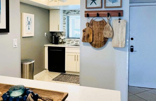Enjoy the views and sounds of the ocean on the large 4th floor balcony, just steps from the beach, of this spacious 2-bedroom, 2-bathroom condo. Perfect for a stress-free vacation! Walking distance to shops, restaurants and the grocery store, The Indies in Ormond by the Sea, is a quiet and friendly condominium centrally located between Flagler Beach and Daytona Beach. There are no cars allowed on the beach here so it's more serene and safe. The interior is Luxury at its finest.