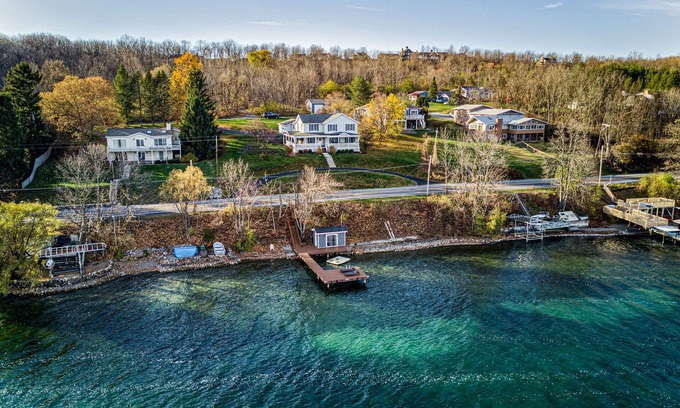 Beautiful year round Canandaigua Lake House. This 3100 sqft 6 bedroom, 3 full bathroom lake-house that sleeps 12 people including a bonus room. The house sits on a hill and has a huge wrap around porch with the most amazing view of the lake as well as the private permanent dock. If you are not enjoying the dock you can spend your time on the porch where you can enjoy coffee and cocktails as well as a good book. The property has an acre of land with a great spot for yard games and ample parking. There is a driveway from a private rd in the back (Onnalinda dr) as well as a circular driveway in the front off West Lake rd. The property is located less then 3 miles from the City of Canandaigua where you can enjoy anything from fine dining to coffee, ice cream, burgers and breweries.