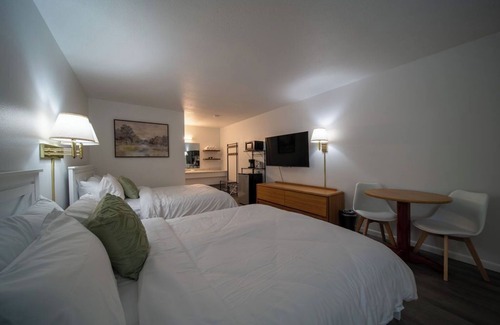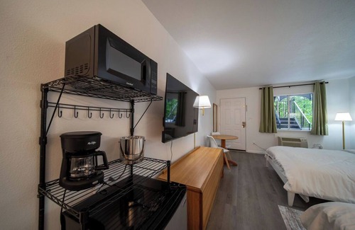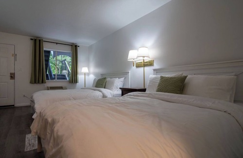 Featuring 2 comfortable queen size beds, this room provides a cozy and inviting atmosphere during your visit. Has small sitting area, A/C, microwave, small fridge, and coffee maker.
