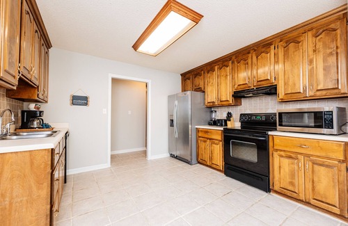 This private house has a fully furnished kitchen for all your cooking needs, a coffee station with complementary coffee, attached 2 car garage, great wifi and free washer and dryer use. There are 2 tv's to entertain your family- one in the living room and one in the master bedroom with Disney+, HULU and ROKU channels or log into your own accounts. Outside you will find a Privacy Fenced in Backyard, perfect for your dogs to play in. The driveway can accommodate up to a 20' trailer if you are coming for the Perry National Fairgrounds & Agriculture Center. A smart lock on the front door allows you to check-in at your convince after your check in time with ease.