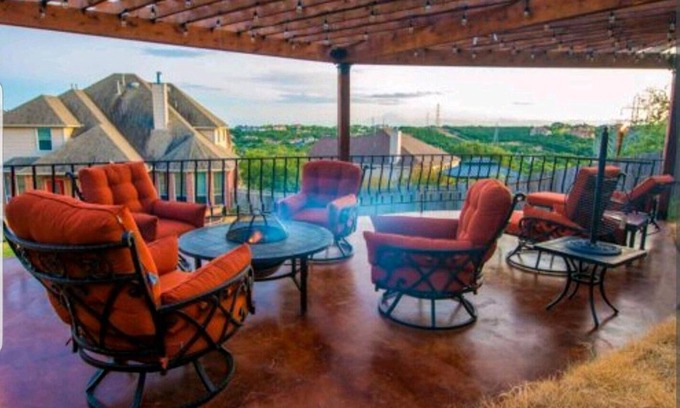 Panoramica's goal is to provide you with a superior vacation rental experience with a unique interior decor. Panoramica established vacation (Superhost with 5 star rating). Enjoy the view of the city from the hilltop pergola, or enjoy watching a movie in the theater with a 133 inch black diamond screen, 4K projector, and magnolia premium sound. Enjoy the koi pond as you climb the steps of Panoramica. Panoramica is centrally located to six flags, sea world, the shops of la Cantera, the Pearl and the river walk.