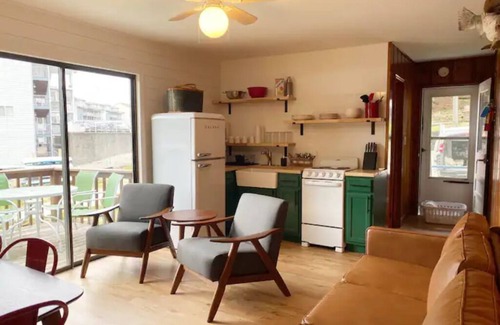 Arnholdt's Mill Cabin #11 is named in honor of one of the towns that now lie at the bottom of the lake, the town of Arnholdt's Mill. This cozy cabin offers one of the best views of the lake from the resort. Guests can enjoy a quiet morning sipping coffee on the private deck, while watching the fish cranes catch their breakfast. In this cabin, you will enjoy being close to the water's edge, with an easy walk to the enclosed fish house and the swimming dock. Cabin #11 has been newly renovated and now features a new kitchenette with new appliances, a new bathroom with a beautiful tile shower, new floors, fresh paint, new bedding, new mattresses, new furniture throughout the cabin and the installation of an efficient mini-split air unit. The master bedroom features a new king size bed and the second bedroom features one new queen bed and one bunk bed.