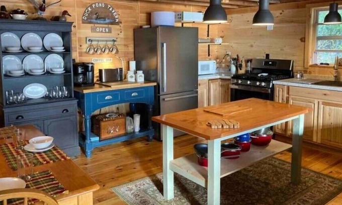This cozy cabin has 2 comfy bedrooms and can accommodate for up to five guests. The primary bedroom is on the second floor with a queen-size bed and a futon that opens up to a full-size mattress. The second bedroom is on the first floor and has a queen-size bed with new foam mattress and an office space. A newly remodeled bathroom includes an enclosed shower. The kitchen and family space are designed with a warm and welcoming interior. The kitchen is well stocked with cooking supplies and utensils. The family room has wall mounted TV. This is a new listing and will post reviews as the summer goes on if you have any questions please contact us. Very quiet area NO LARGE GATHERINGS.