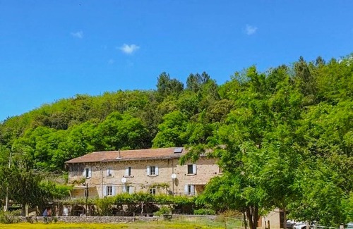 Surrounded by a wild river in the Cévennes of the Ardeche, this typical sandstone farmhouse welcomes you. Its spacious, bright and comfortable interior is made of beautiful materials and has a beautiful, careful decoration with high-quality furniture that skillfully combines contemporary and Provençal elements with a touch of the rustic. Arrive with your extended family and enjoy the rooms with high vaulted ceilings that invite you to linger and socialize.