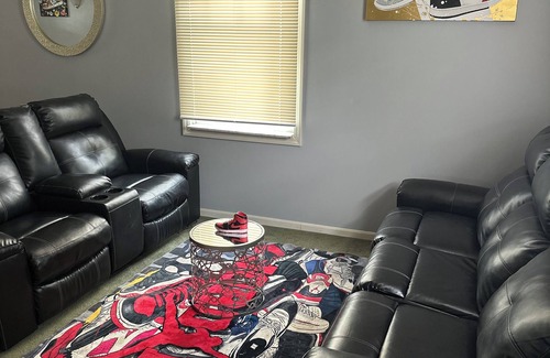 Get ready for an unforgettable stay in this spacious and stylish Cincinnati retreat, designed with sports fans in mind! Decked out in Air Jordan decor, this home is perfect for families, friends, and groups looking to make lasting memories.