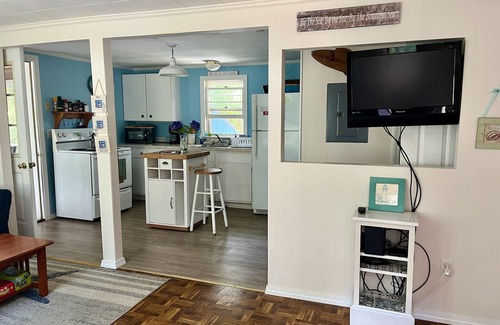 This well equipped cottage is the perfect escape; you could spend the entire time reading in the screened-in porch, relaxing in a hammock, or outdoors playing games like bacci ball or corn toss. But if you'd like to venture out, talk a walk down the street to the bay beach for a swim or a beautiful sunset. At night, grill up some seafood on our brand new flat top grill, or bring in dinner from a local restaurant within minutes of the cottage, roast marshmallows at the fire pit, and gaze at the stars.