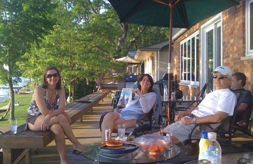 The deck runs the length of the house, with 2 gas grills, and umbrelled tables that seat 12, its great for outdoor dining or watching sunsets, lake activity and an array of yellow finches, hummingbirds and the herons that grace our lake. And if you are lucky you'll see Magician Lake's bald eagle. We also have a fire pit for family gatherings after the sun sets and a sectional couch on the deck with a fire table for relaxing in the evening.