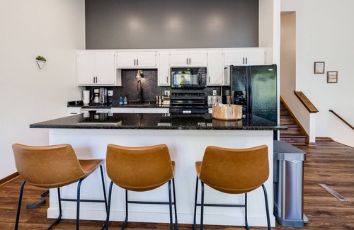 Ever wanted to rent a cabin but with easy access to the amenities of the city? Enjoy 4 bedrooms, 3 bathrooms, 2 car garage, and your own private deck to take in the lake views. If you want to book both sides of the duplex, that would be a total of 8 bedrooms and 6 baths and here is a link: https://www.vrbo.com/2785147